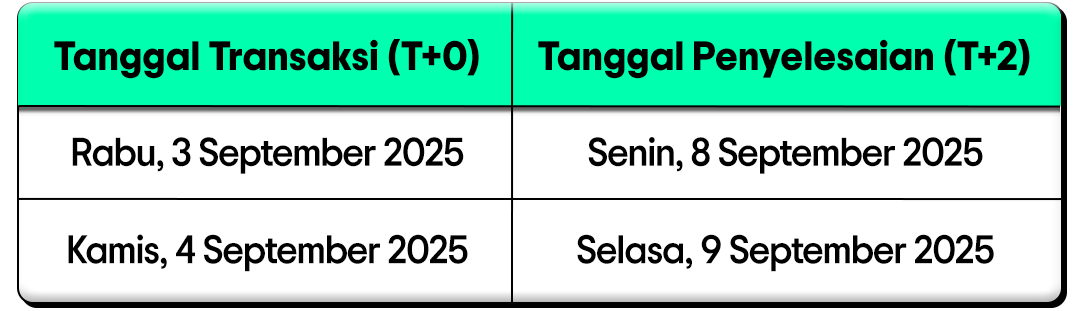 Penarikan dana ke rekening bank yang berbeda dari RDN memiliki batas waktu (cut-off) hingga pukul 11.00 WIB. Jika penarikan dana dilakukan setelah jam tersebut, dana akan diproses pada hari bursa berikutnya.