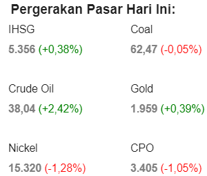 Hari ini IHSG ditutup menguat 0,38% ke level 5.356.