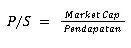 4. Price to Sales (P/S) adalah rasio yang menunjukkan hubungan antara harga saham perusahaan dan pendapatan bersih per saham. P/S juga dapat dihitung dengan membandingkan market cap dengan total pendapatan perusahaan.