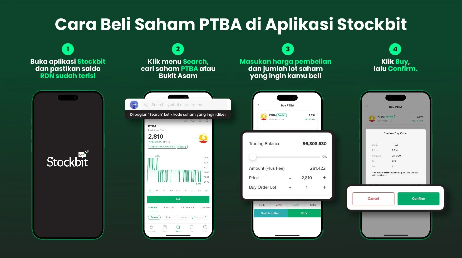 Apabila kamu sudah terdaftar di Stockbit, simak tutorial cara membeli saham PTBA di aplikasi Stockbit berikut ini: