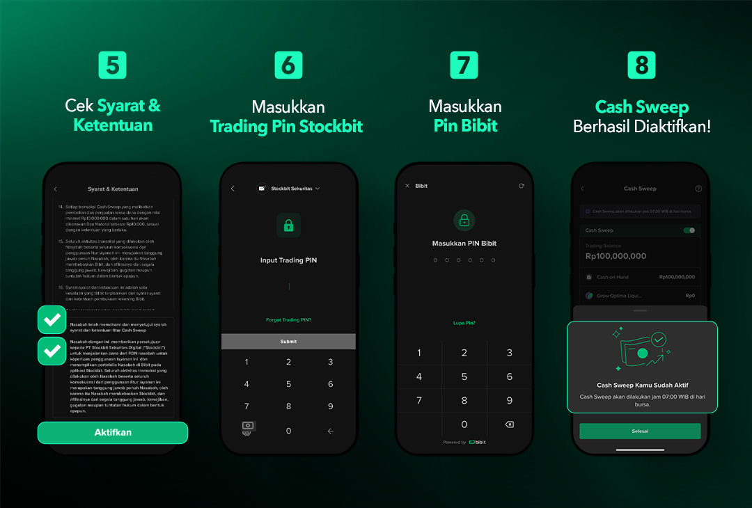 Jika kamu mengaktifkan fitur Syariah pada akun Bibit, maka kamu tidak menggunakan fitur Cash Sweep. Kamu bisa menonaktifkan fitur Syariah pada akun Bibit agar bisa menggunakan fitur Cash Sweep.