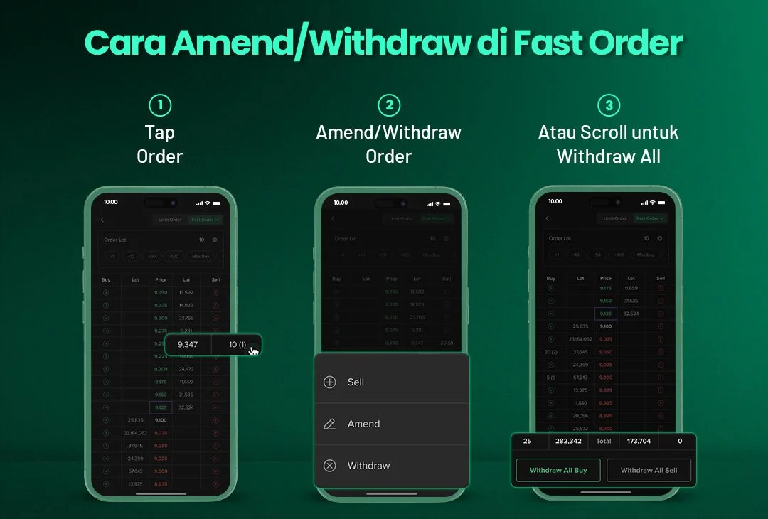 Jual dan beli saham jadi lebih gesit dengan Fast Order di Stockbit. Kamu bisa Buy, Sell/Reorder, Amend, Withdraw sekaligus dalam satu halaman.