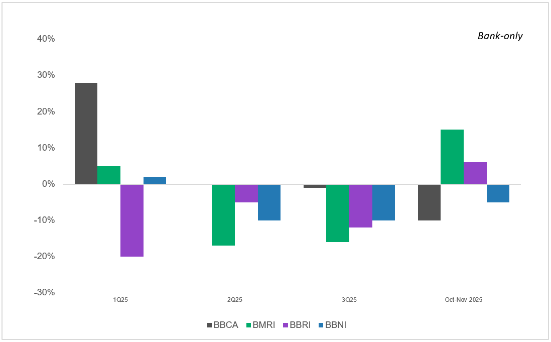 Tren Estimasi Laba Bersih Big 4 Banks Mulai Membaik Sejak Pertengahan Nov-25