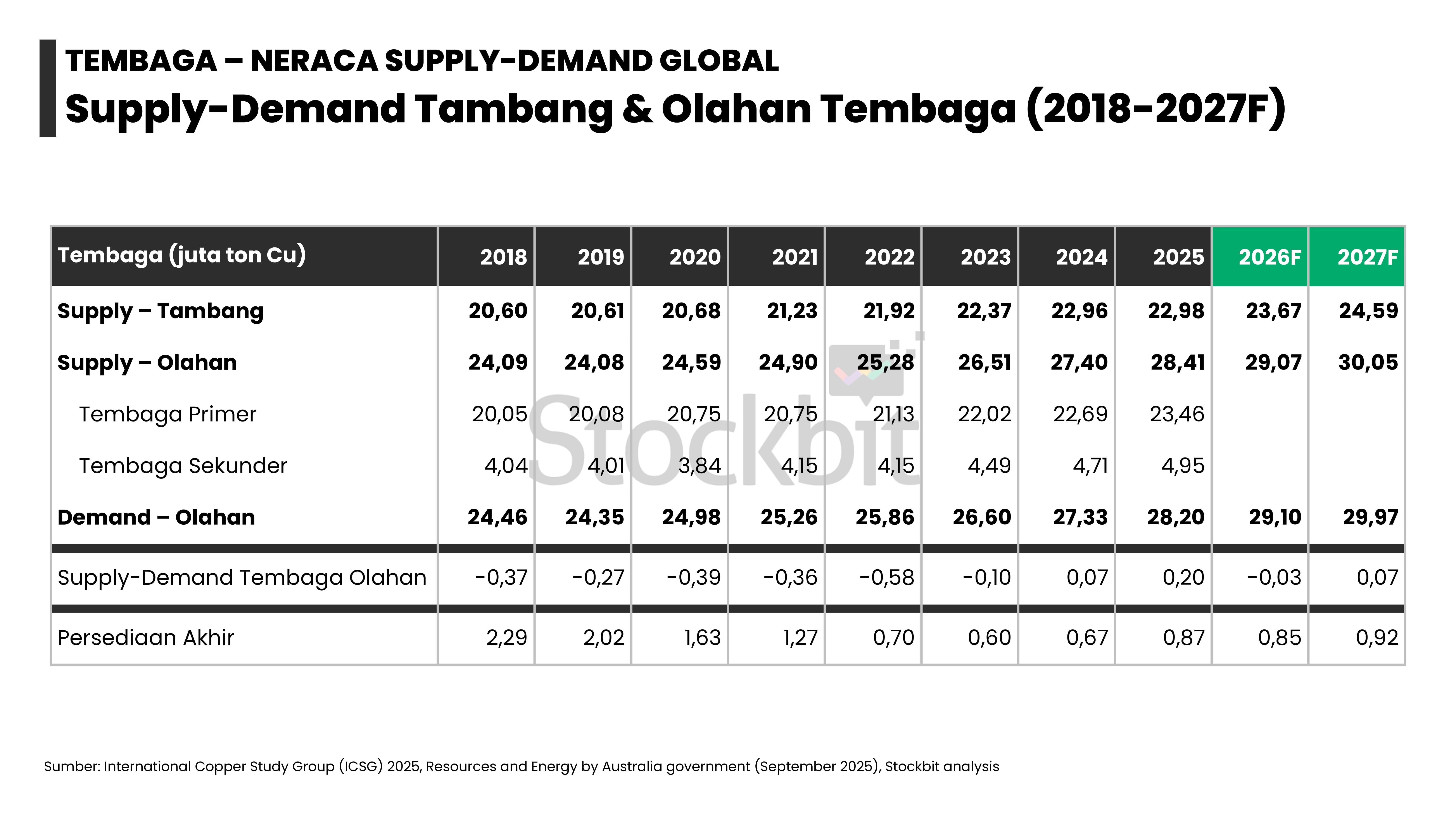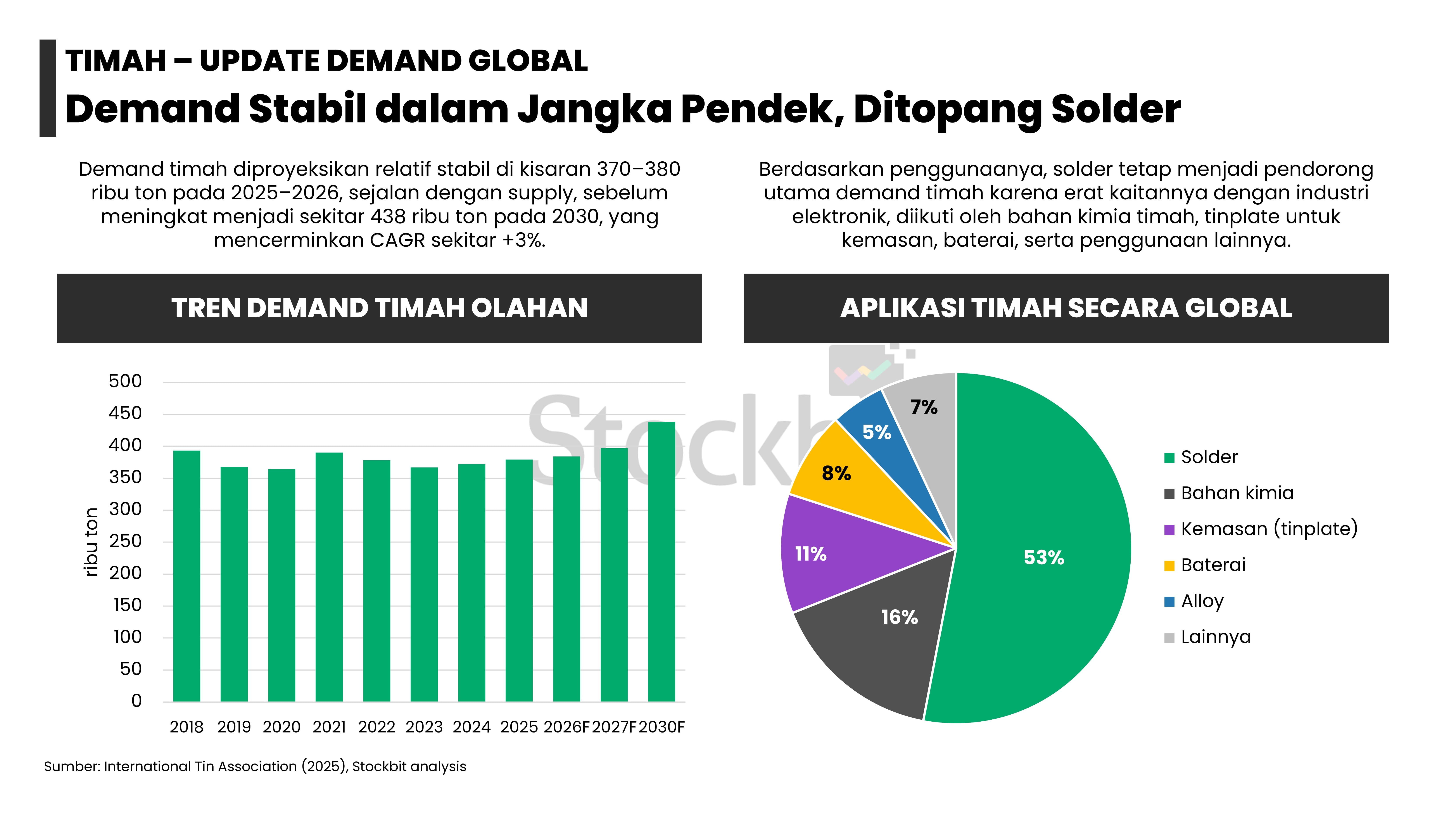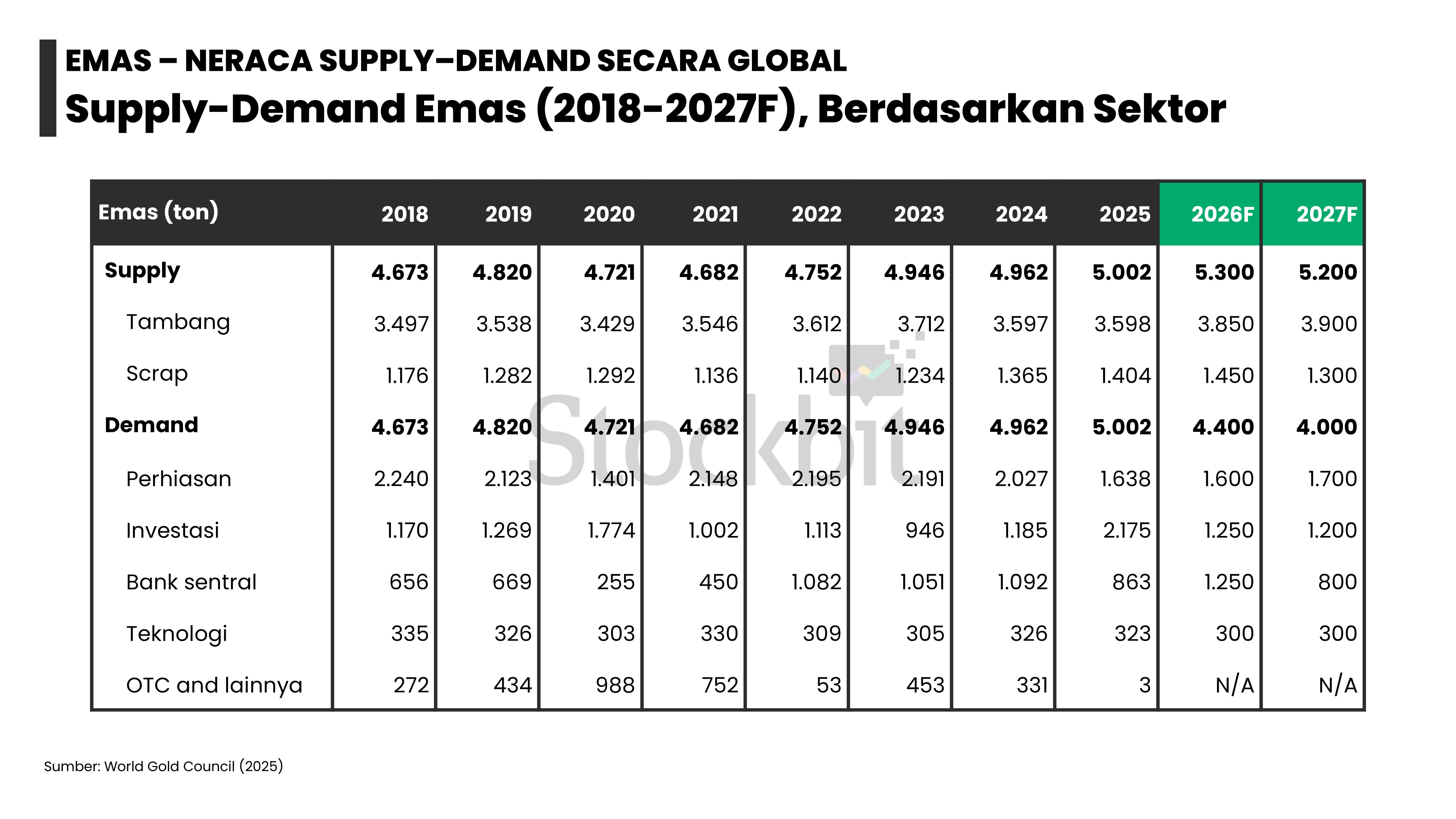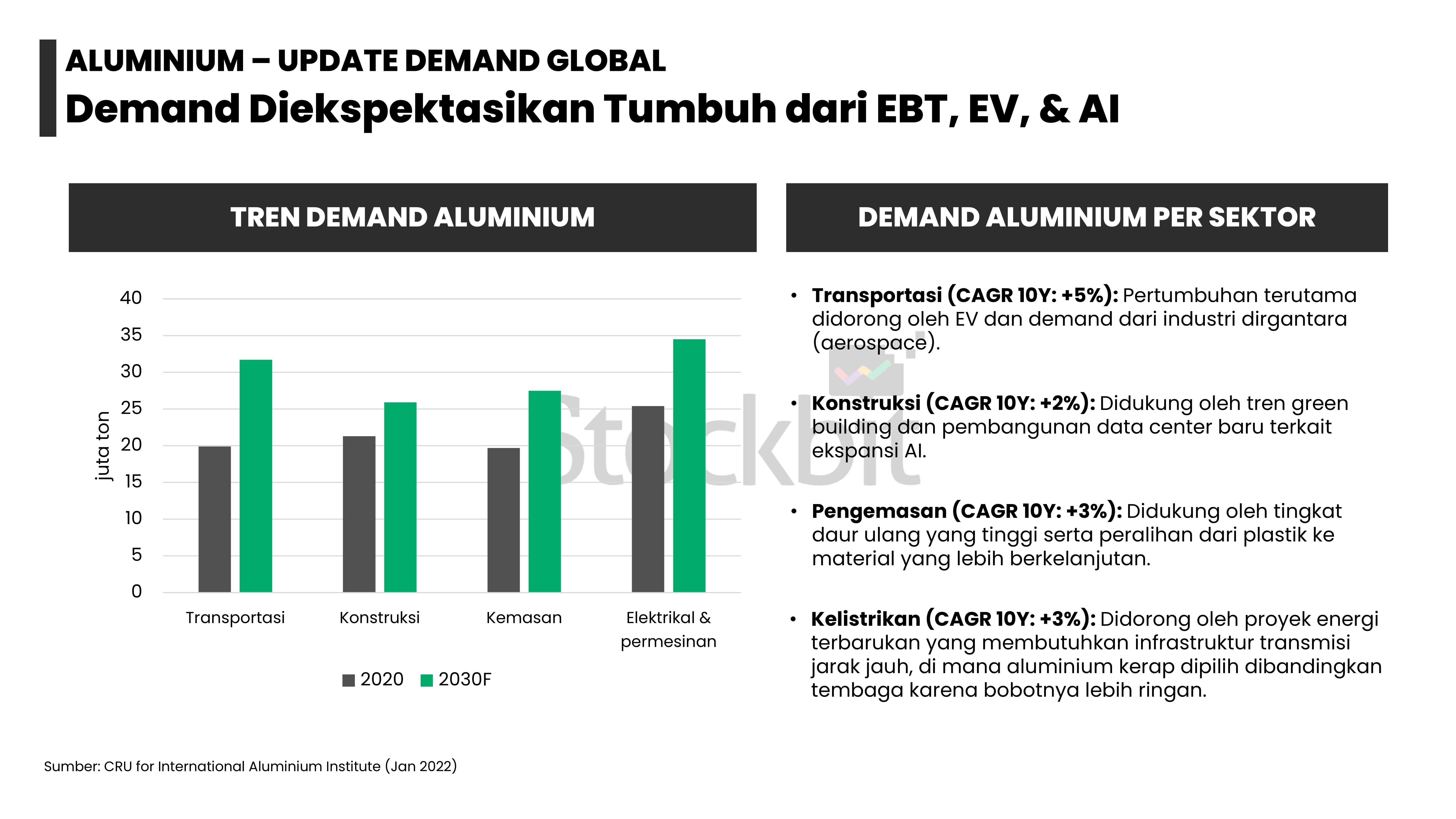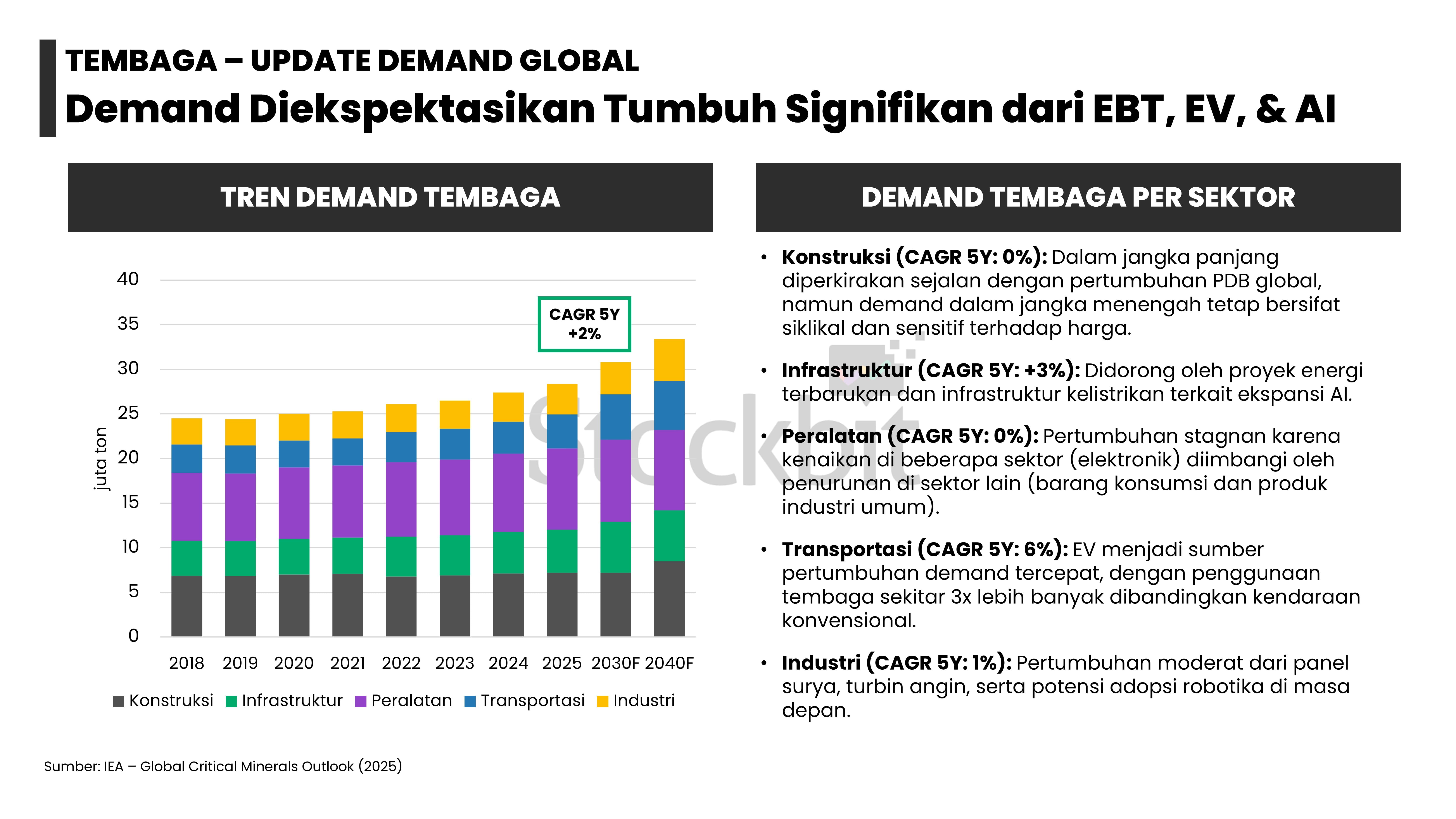 - Masing–masing logam memiliki dinamika supply–demand yang berbeda: 1) emas didorong permintaan dari bank sentral dan investor lain; 2) nikel didorong pengetatan pasokan dari Indonesia; 3) aluminium didorong pengetatan tingkat utilisasi smelter di tengah kenaikan permintaan dari EV dan EBT; 4) tembaga didorong penurunan produksi tambang di tengah kenaikan permintaan dari EV dan EBT; dan 5) timah didorong pengetatan pasokan dari Indonesia.