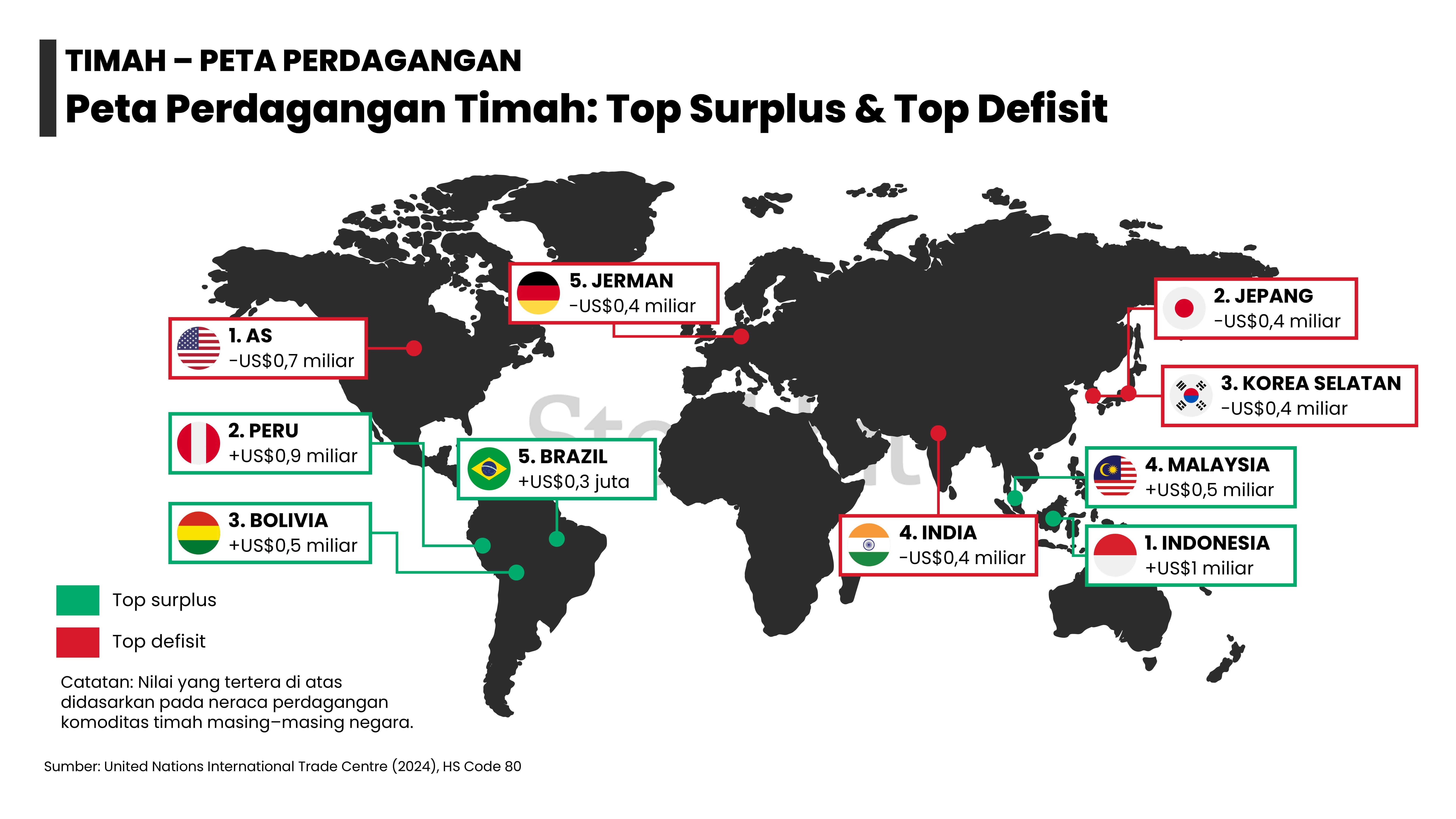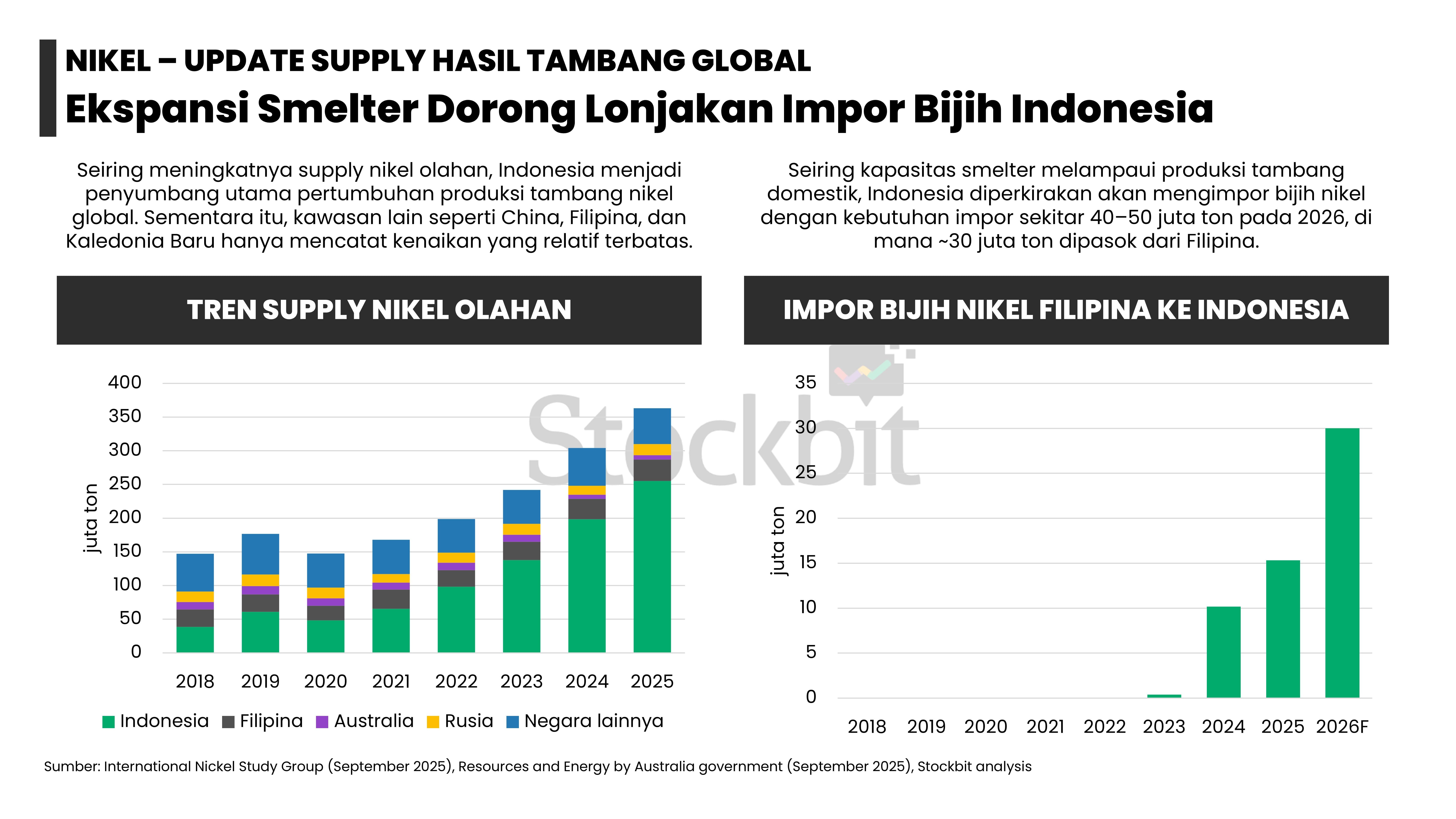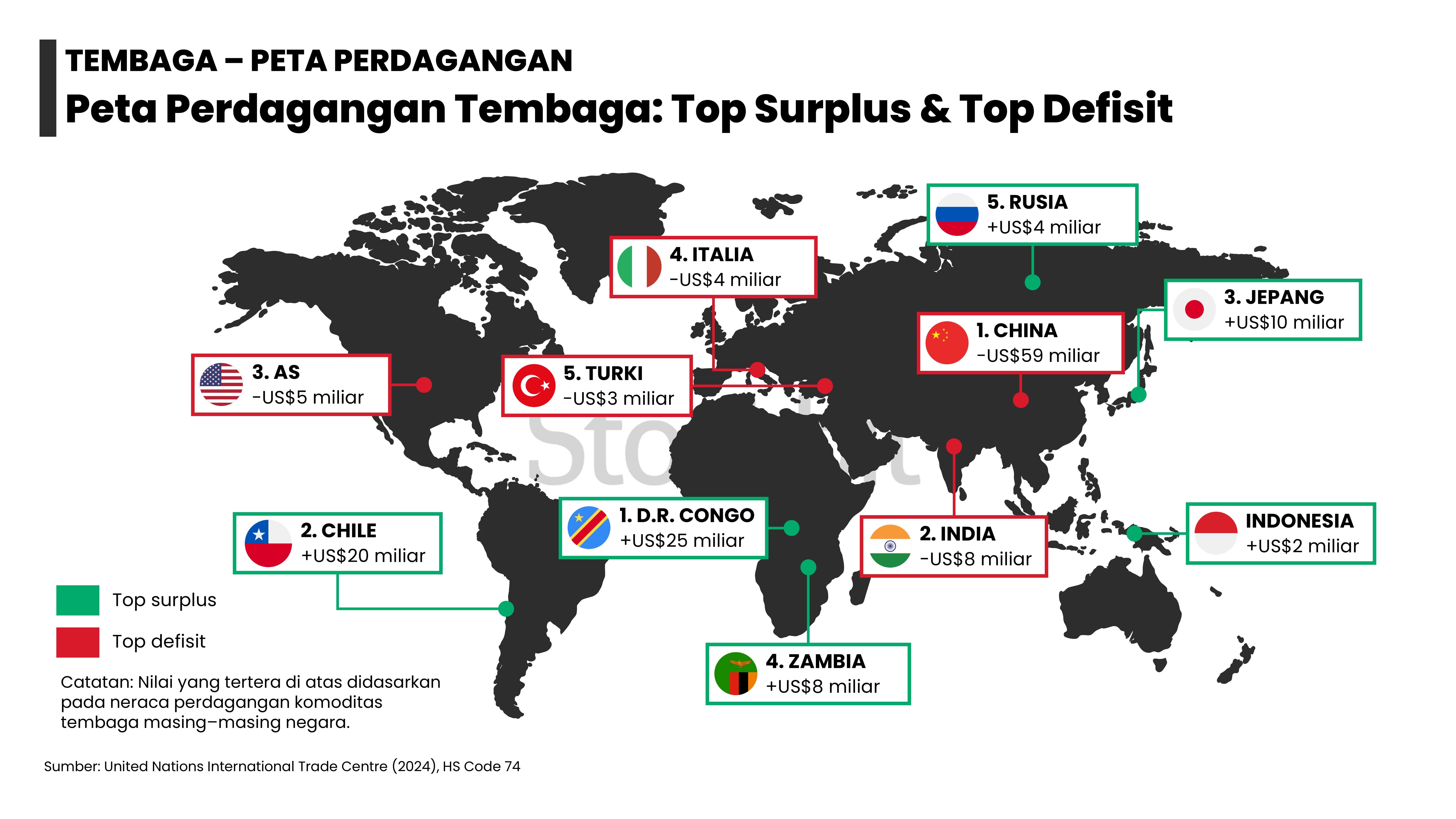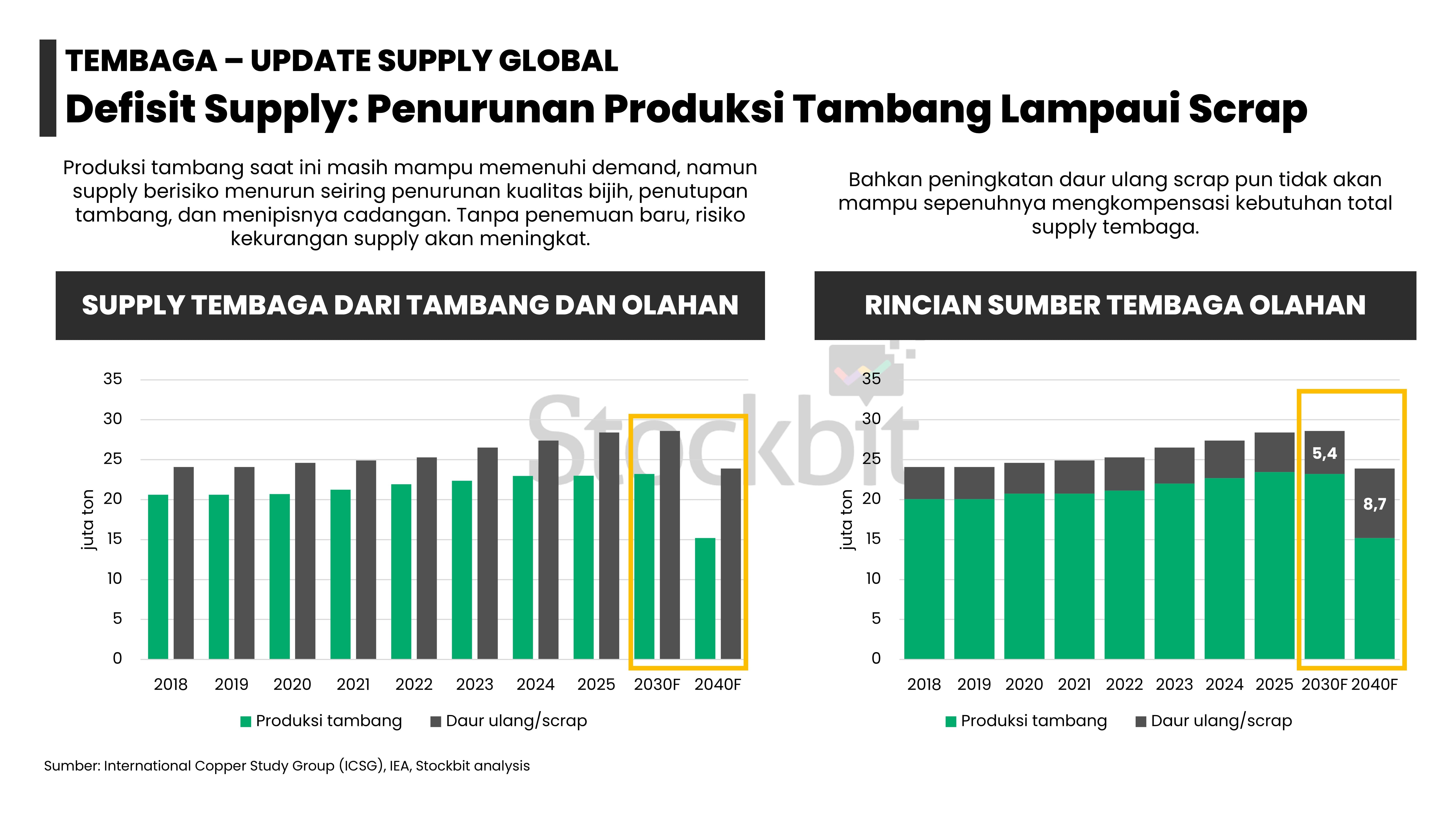 - Masing–masing logam memiliki dinamika supply–demand yang berbeda: 1) emas didorong permintaan dari bank sentral dan investor lain; 2) nikel didorong pengetatan pasokan dari Indonesia; 3) aluminium didorong pengetatan tingkat utilisasi smelter di tengah kenaikan permintaan dari EV dan EBT; 4) tembaga didorong penurunan produksi tambang di tengah kenaikan permintaan dari EV dan EBT; dan 5) timah didorong pengetatan pasokan dari Indonesia.