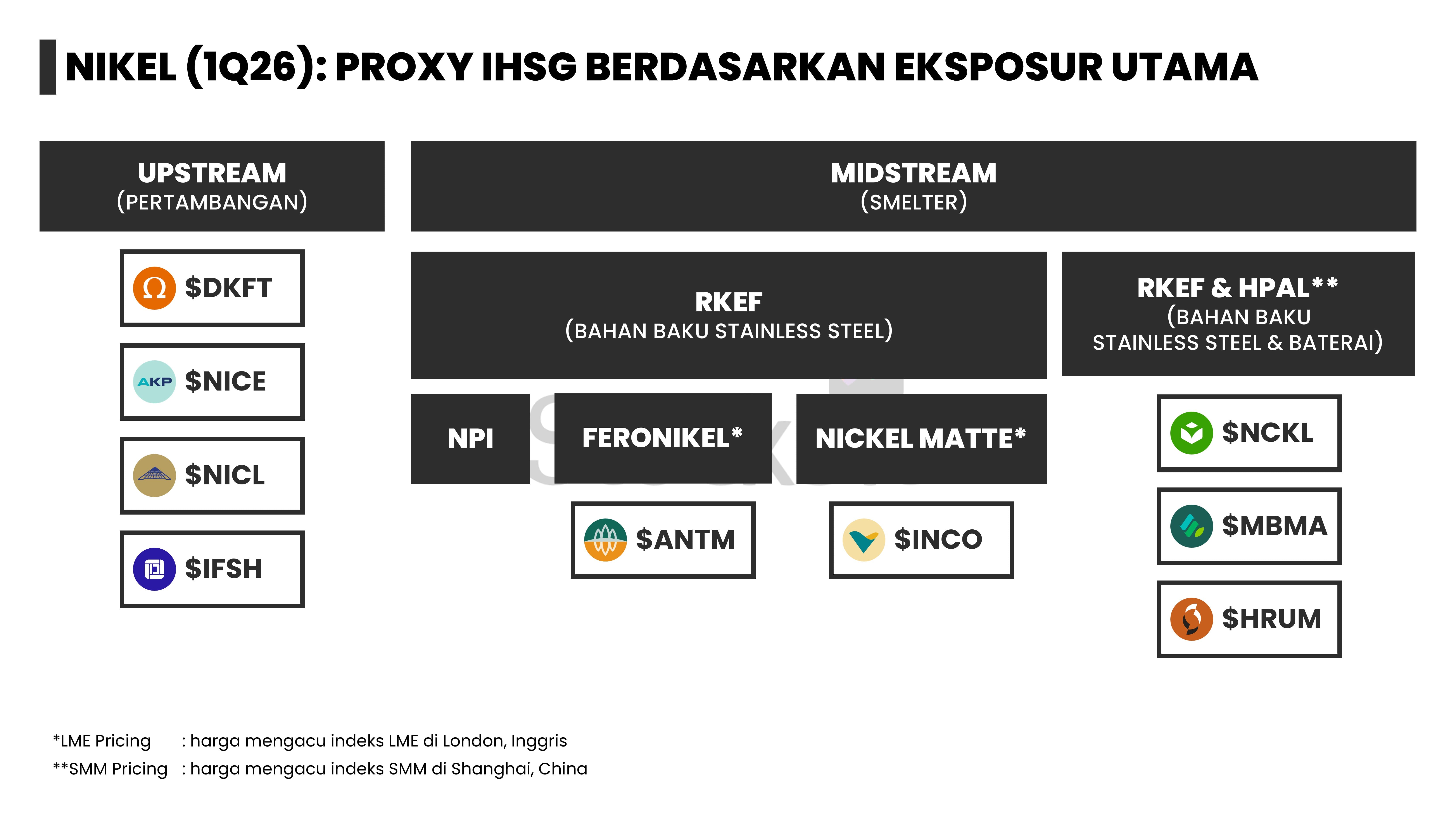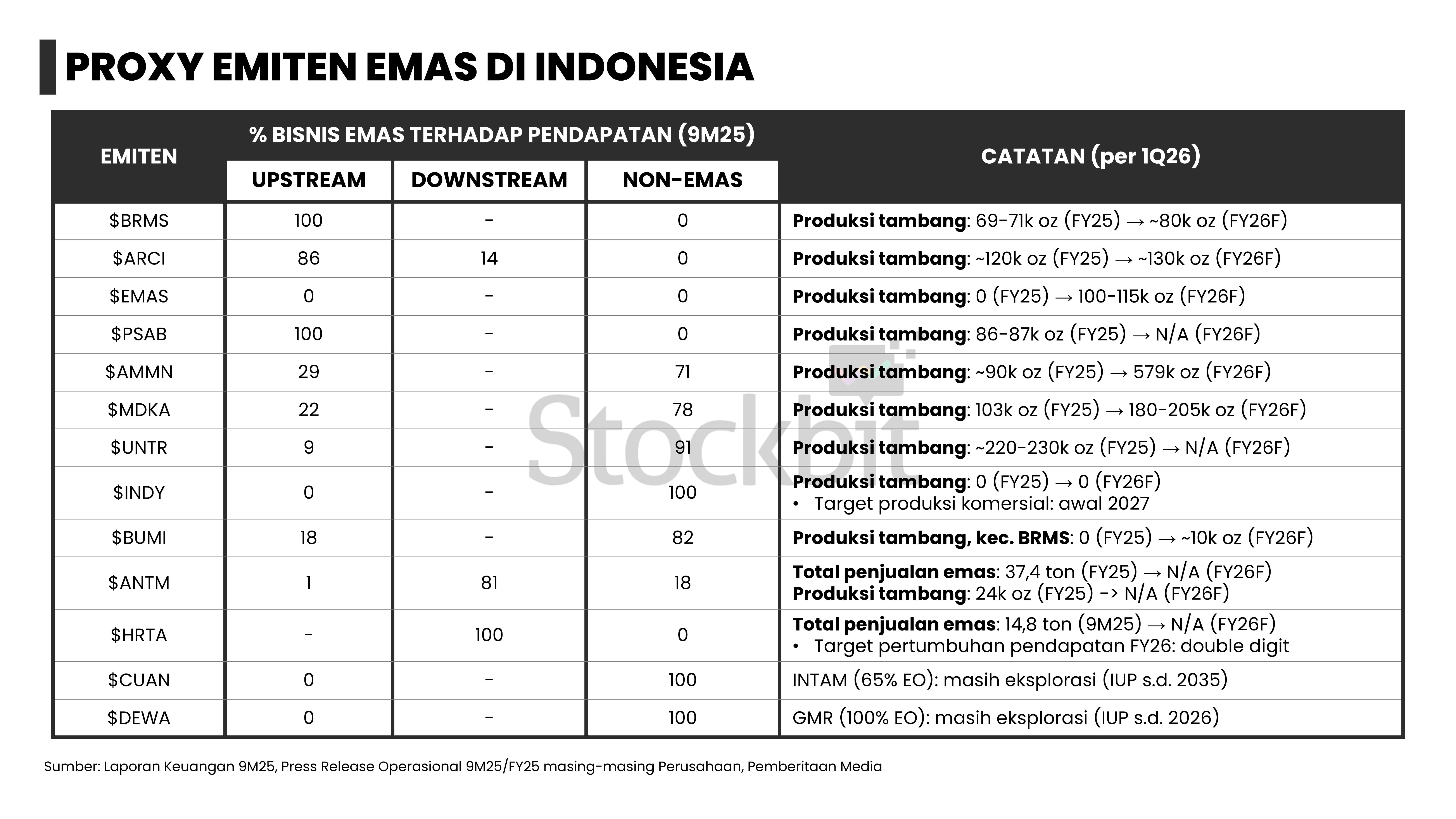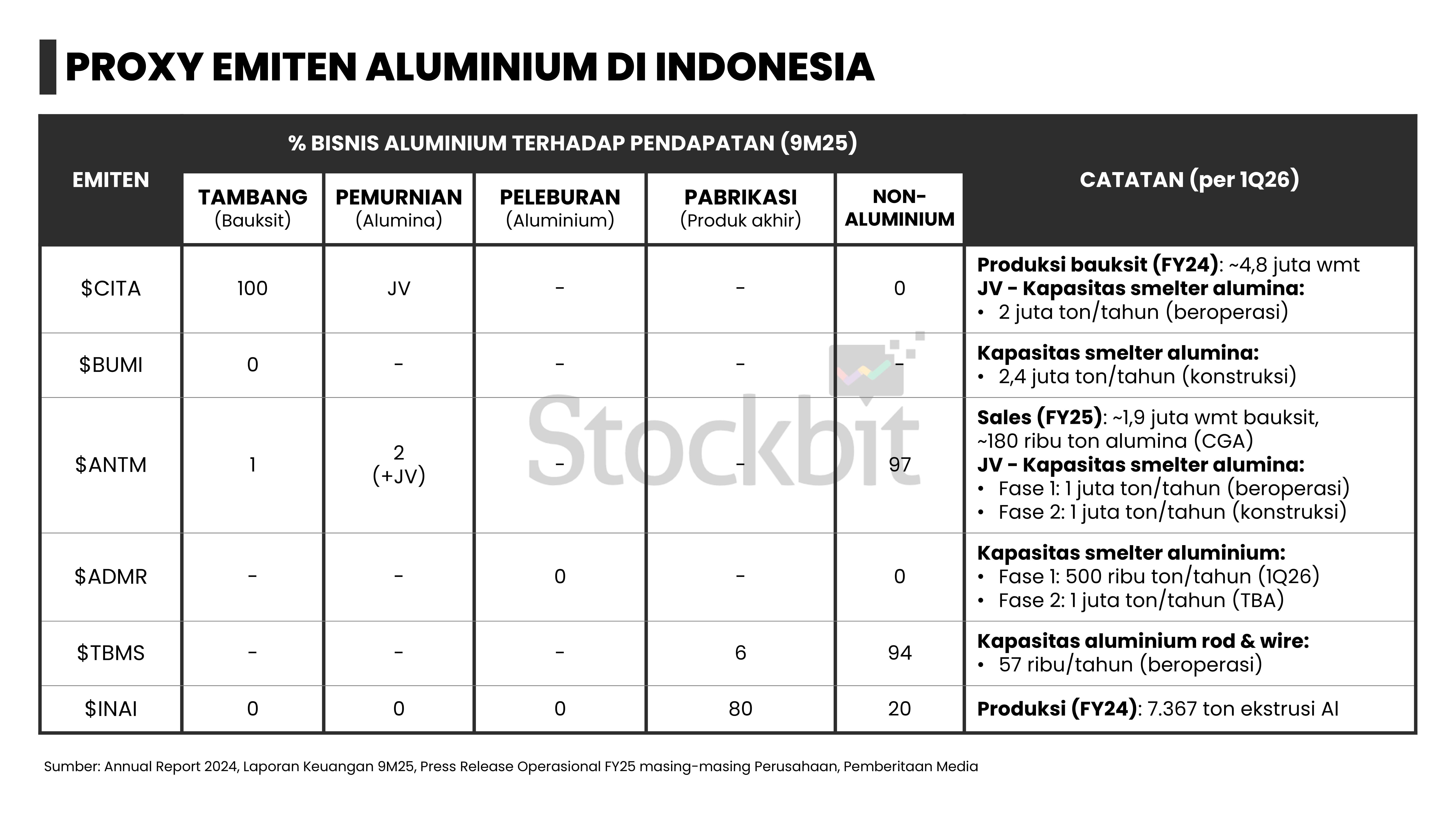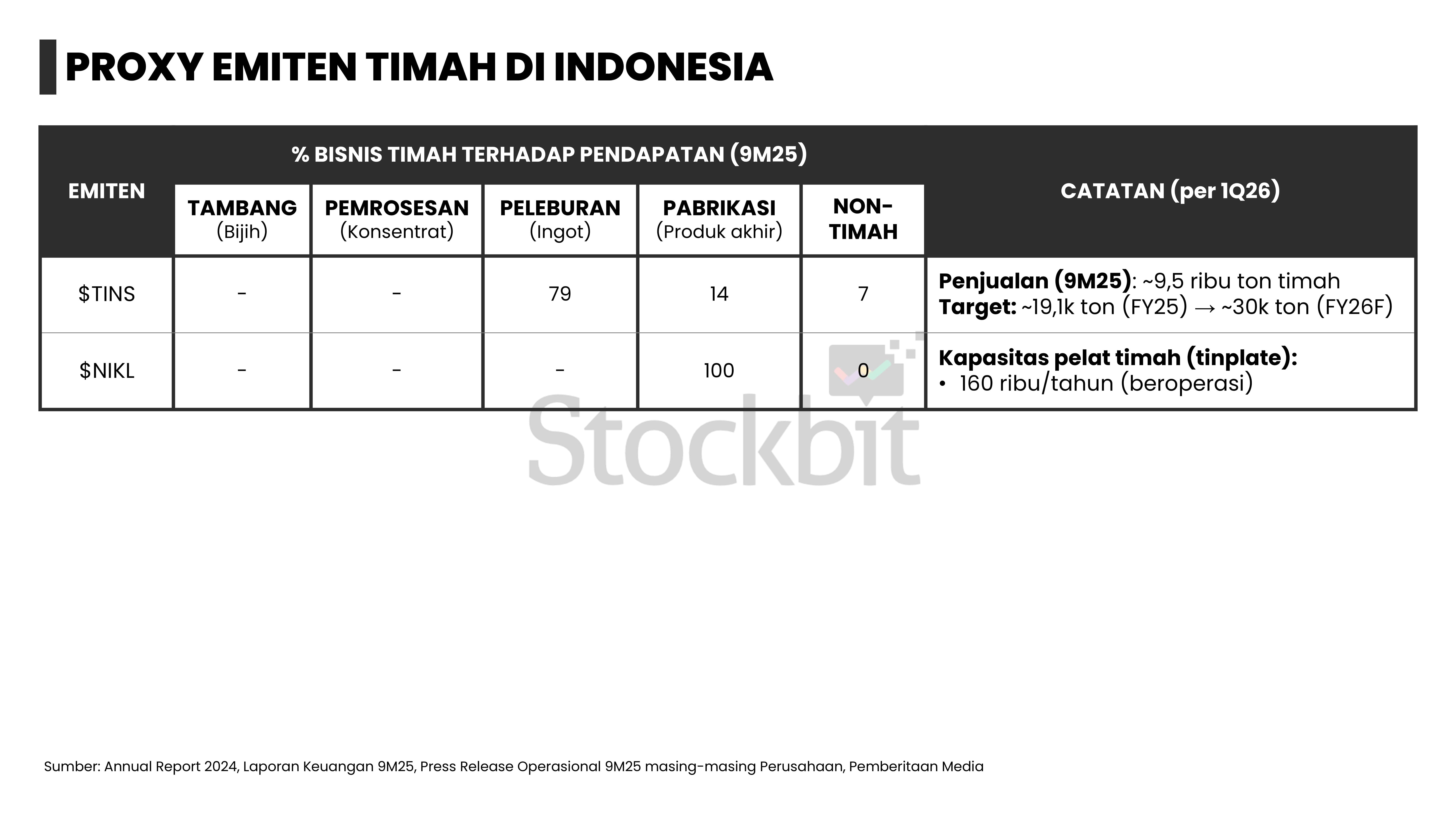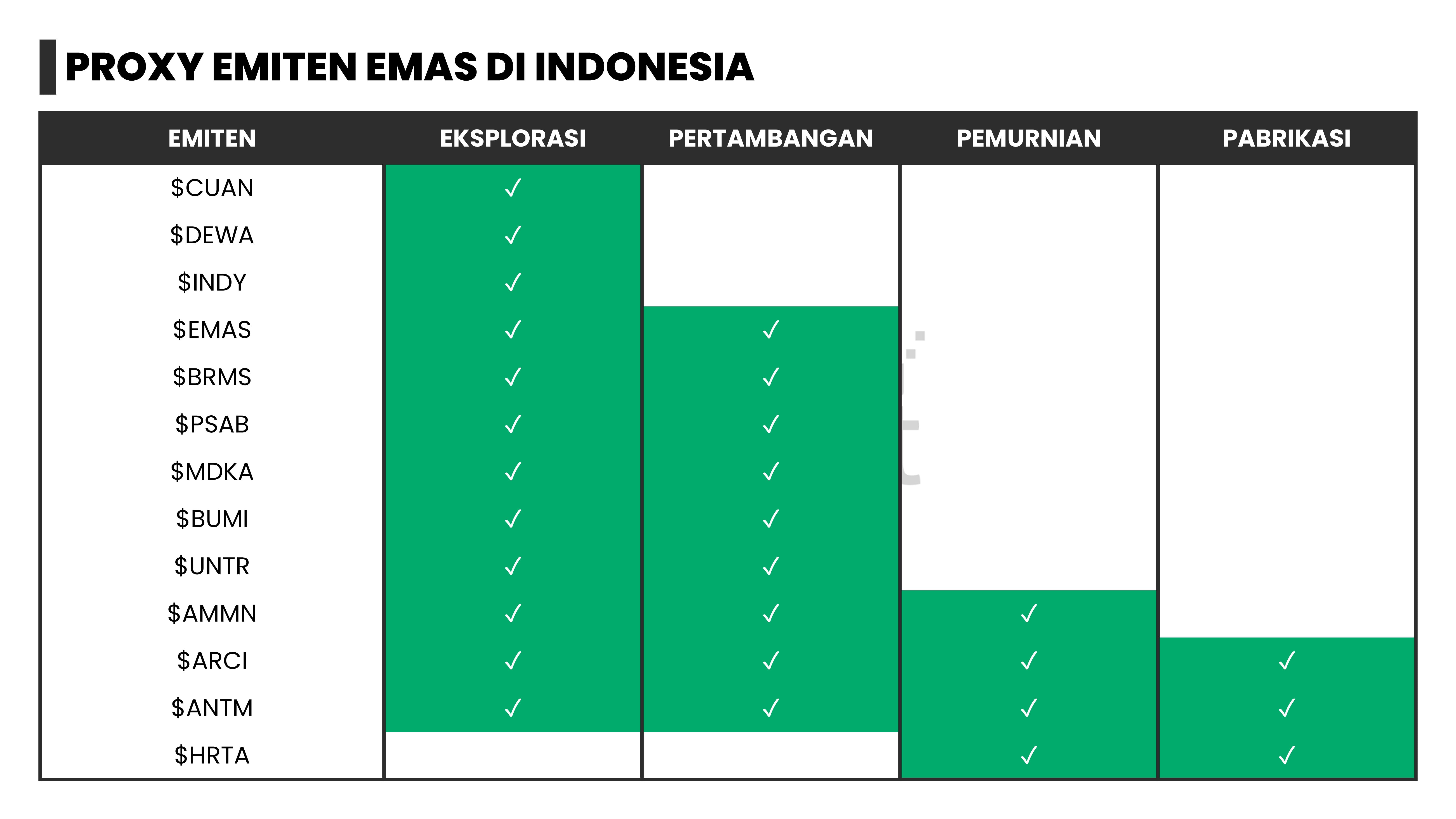 - Report ini juga akan membahas struktur bisnis dan margin drivers dari 27 emiten yang menjadi proxy komoditas kelima logam tersebut di IHSG, antara lain $EMAS, $ADMR, dan $TINS.