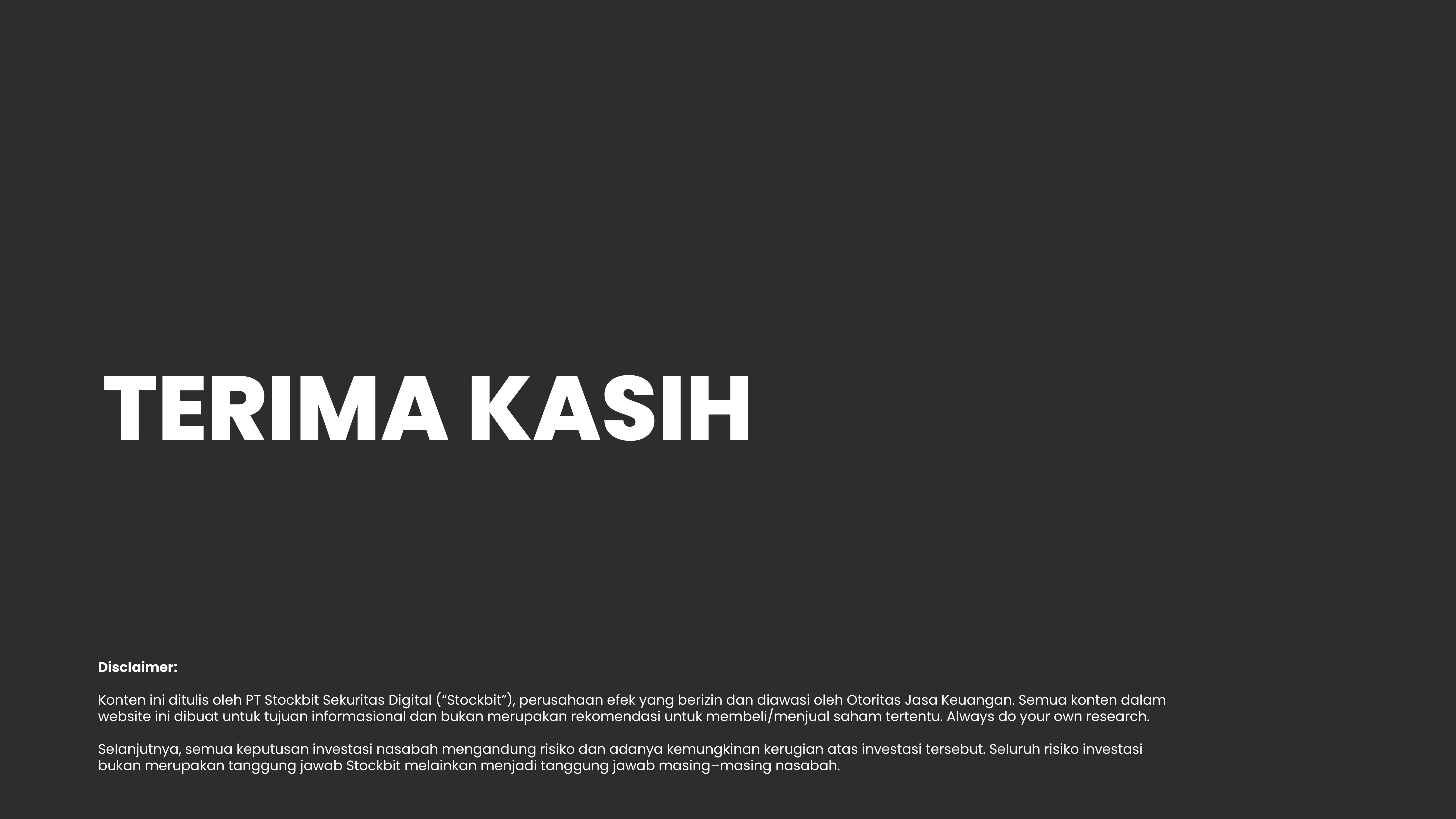 Konten ini ditulis oleh PT Stockbit Sekuritas Digital (“Stockbit”), perusahaan efek yang berizin dan diawasi oleh Otoritas Jasa Keuangan. Semua konten dalam website ini dibuat untuk tujuan informasional dan bukan merupakan rekomendasi untuk membeli/menjual saham tertentu. Always do your own research.
